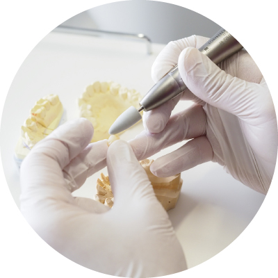 BPSシステムが認定された技工所で患者さんの印象とセントリックトレーの記録をもとにして模型を作製、納品します。専用の印象剤を使用して、患者さんに口の周りを動かしていただきながら生理的・機能的な型を作っていきます。これ以降の作業は BPSの公認歯科技工士が作製します。