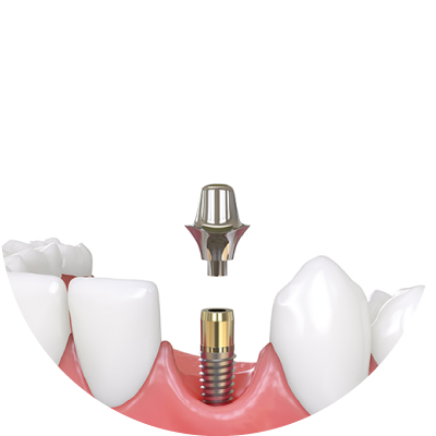 インプラントがあごの骨にしっかり固定されたことが確認できたら、再び歯ぐきを切ってインプラントの頭を出し、アバットメント(インプラントと人工歯の接続部)を取りつけます。2週間程度、歯ぐきの治癒を待ってから最終的な型どりを行います。